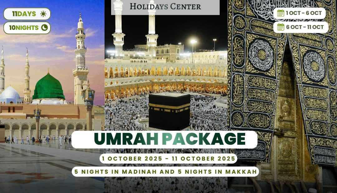 Plan your Umrah with ease this October. Spend 5 nights at Pullman Zam Zam Madinah, close to Al-Masjid an-Nabawi, where you can visit the Prophet’s (pbuh) mosque and the tombs of his companions. Continue your journey by donning ihram at Bir Ali Mosque before traveling to Makkah. Stay 5 nights at Swissotel Makkah, just steps away from Al-Masjid al-Haram, providing convenient access for prayers and rituals. This package is designed to provide a smooth and spiritually fulfilling Umrah experience with quality accommodations and seamless arrangements.